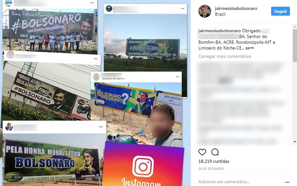 Postagem de Jair Bolsonaro em rede social agradece outdoors de apoio ao deputado (Foto: Instagram/Reprodução)
