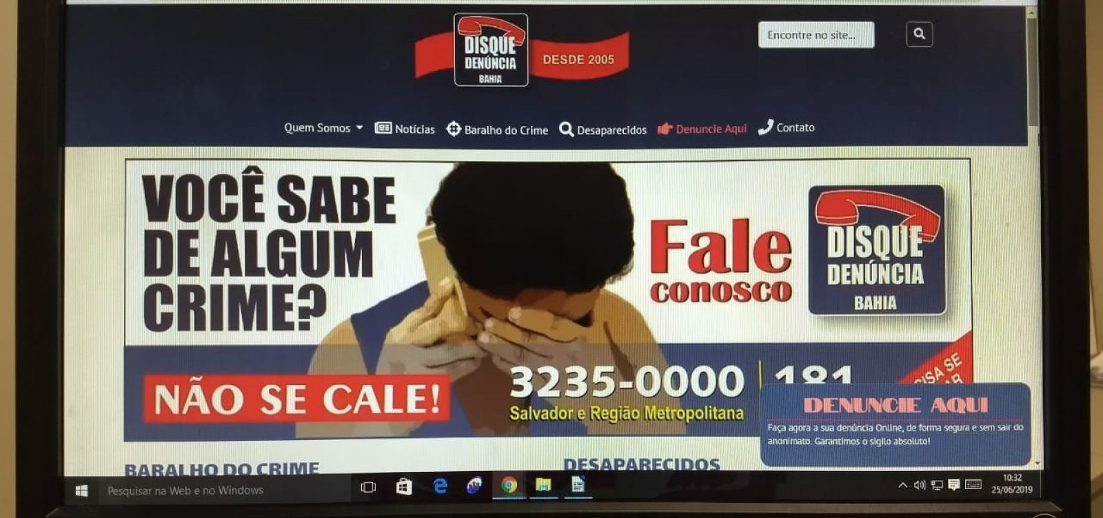 O Disque-Denúncia, vinculado à Superintendência de Inteligência da Secretaria de Segurança Pública da Bahia (SSP-BA), passa, a partir desta terça-feira (25), a receber informações da população também pela internet, em um site criado para disponibilização do serviço.