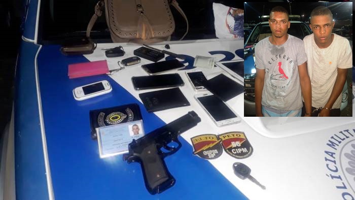 Os criminosos roubaram os pertences das vítimas e seguiram em um Celta Life prata, de placa NTP 9779, em direção a Rotula do Abacaxi, onde foram alcançados pela PM. Com os assaltantes foram apreendidos cinco celulares, um tablete, cartões, documentos de identificação, bolsas e outros itens.