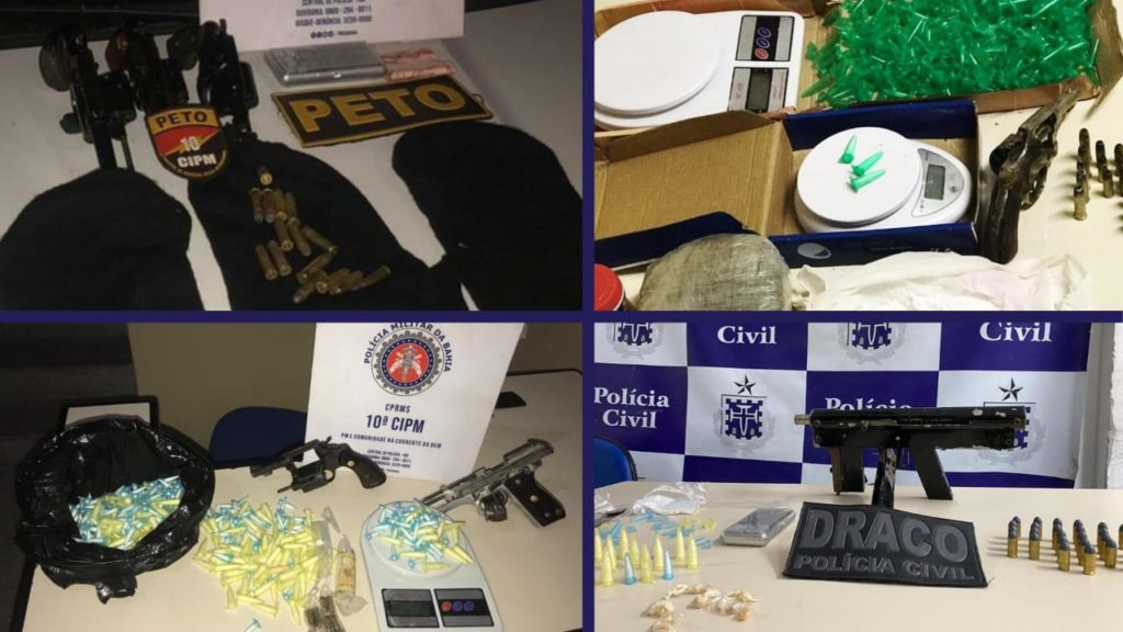 Ações integradas do 3° Pelotão da 10ª Companhia Independente da Polícia Militar (CIPM/Candeias), da 17ª Delegacia Territorial (DT) de Madre de Deus e do Departamento de Repressão e Combate ao Crime Organizado (Draco) apreenderam 25 armas de fogo no mesmo período. Entre elas submetralhadoras, espingardas, pistolas e revólveres.